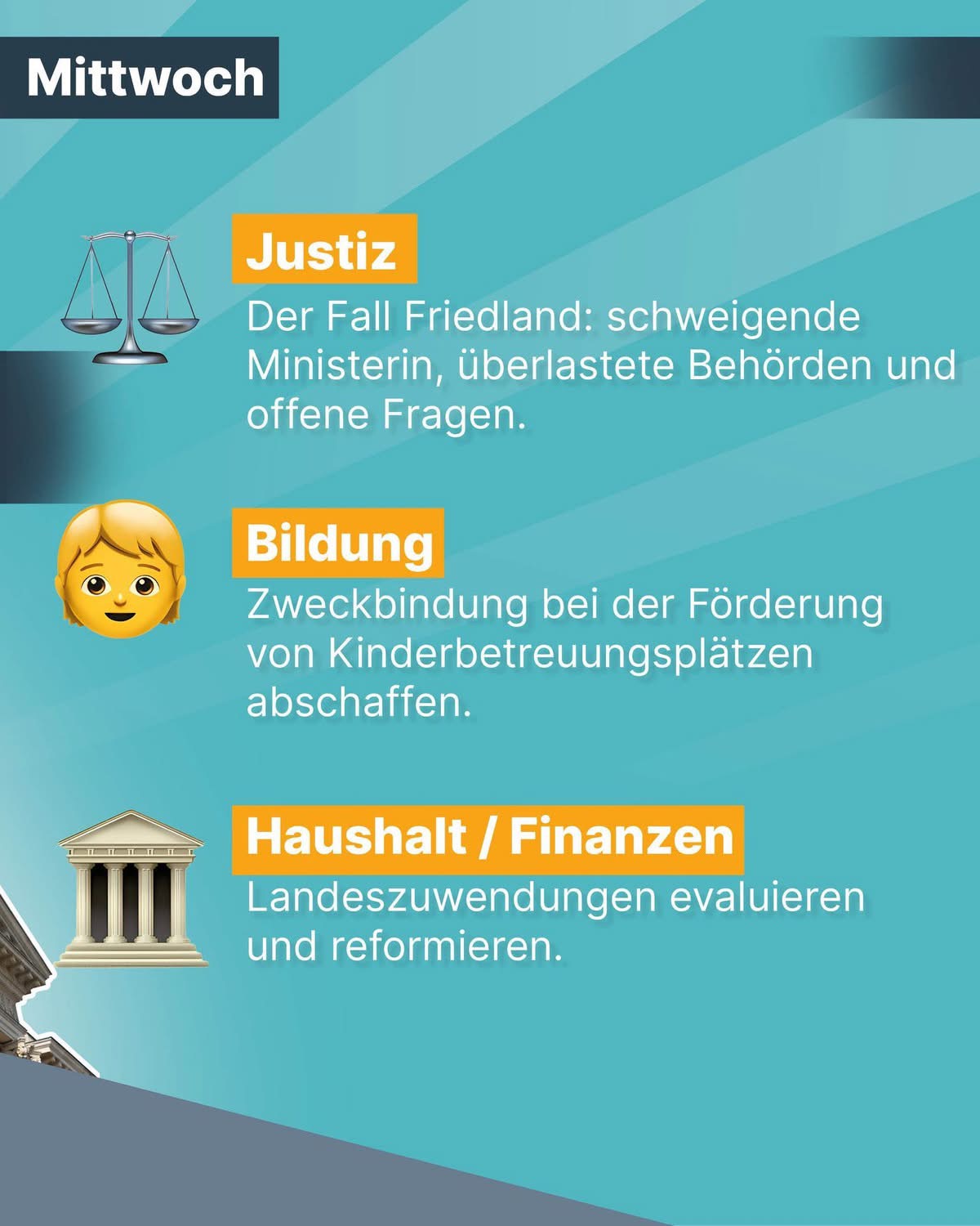 • sowie Zukunftsthemen wie digitale Polizeiarbeit und zusätzliche Medizinstudienplätze.
