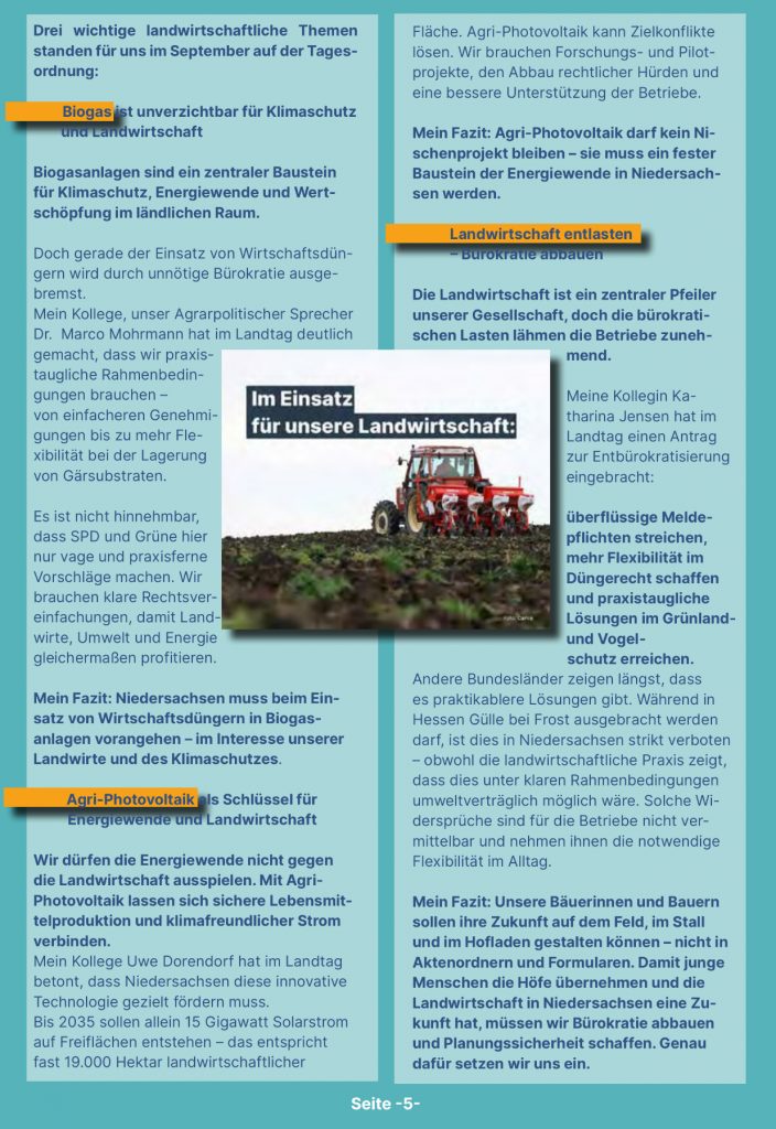 • Landwirtschaft entlasten & Energiewende praxisnah gestalten