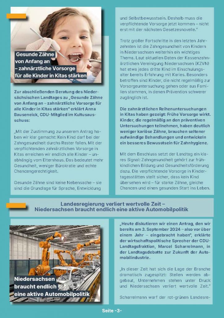 • 🦷 Gesunde Zähne von Anfang an – Der Landtag stärkt die verpflichtende Vorsorge für Kinder in Kitas.