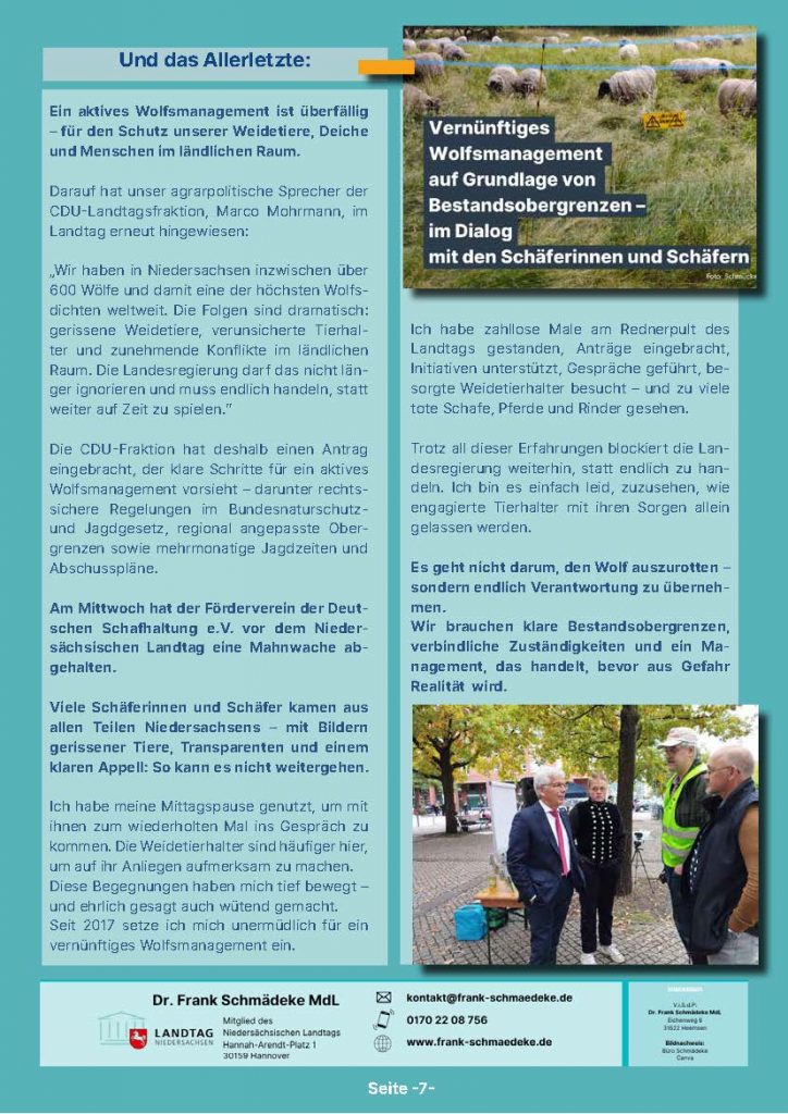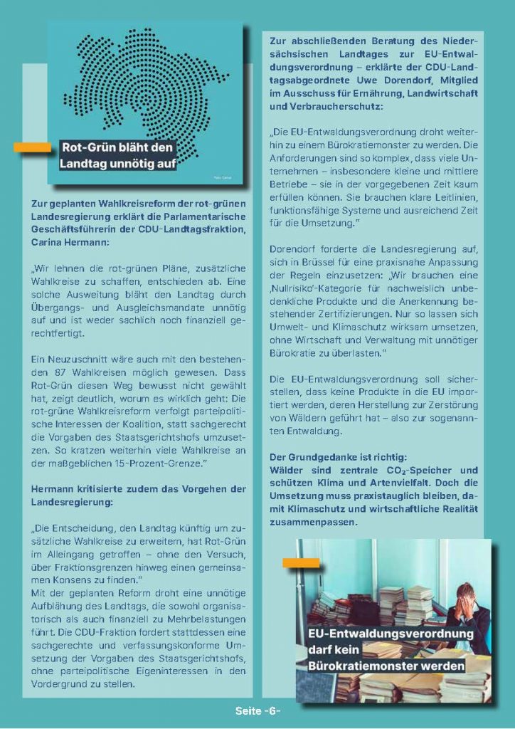 Ob es um Mobilität, Sicherheit oder ländlichen Raum geht – der Newsletter zeigt, wo Niedersachsen jetzt mutige Entscheidungen braucht. Besonders eindrücklich: Dr. Schmädekes Einsatz für die Weidetierhalter im Land.